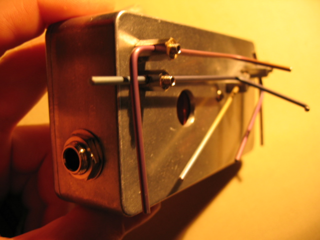 Hexネジ装着を失敗して、Mbiraskiの貴重なブリッジを一本お釈迦にしてしまったことは既に書いた。これは、その廃物片割れというか、破片を再利用して作ったプロトタイプである 。